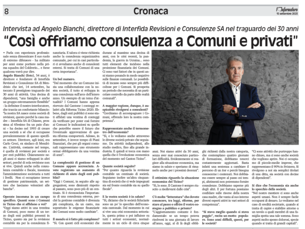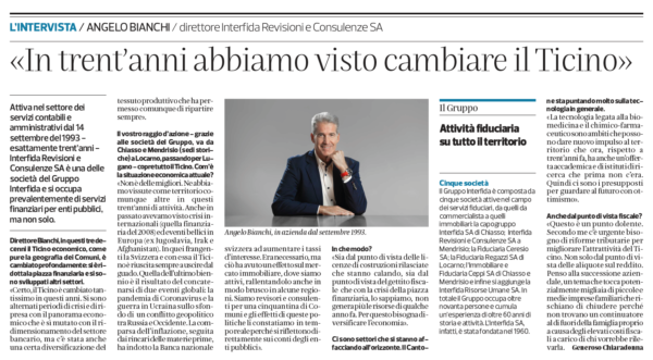 Scopri l’intervista completa ad Angelo Bianchi, Direttore di Interfida Revisioni e Consulenze SA, in cui condivide le sue esperienze e competenze nel mondo finanziario e della consulenza durante i 30 anni di attività dell’azienda.